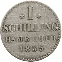 Reverse legend: * I * SCHILLING HAMB.COUR. 1855