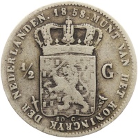 Reverse legend: 1858.MUNT VAN HET KONINGRYK DER NEDERLANDEN 1/2 G