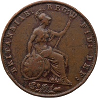 Reverse: Seated Britannia, facing right, trident in left hand, shield in right hand Lettering surrounding