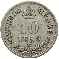 Reverse legend: SCHEIDE MÜNZE 10 1859 M