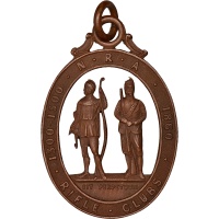 Obverse: The medal displays two figures: one dressed in historical archer attire holding a longbow, and the other in a 19th-century rifleman's uniform, symbolizing the evolution of marksmanship.