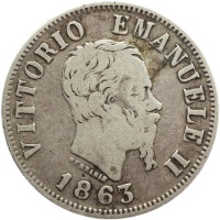 Obverse legend: VITTORIO EMANUELE II FERRARIS 1863