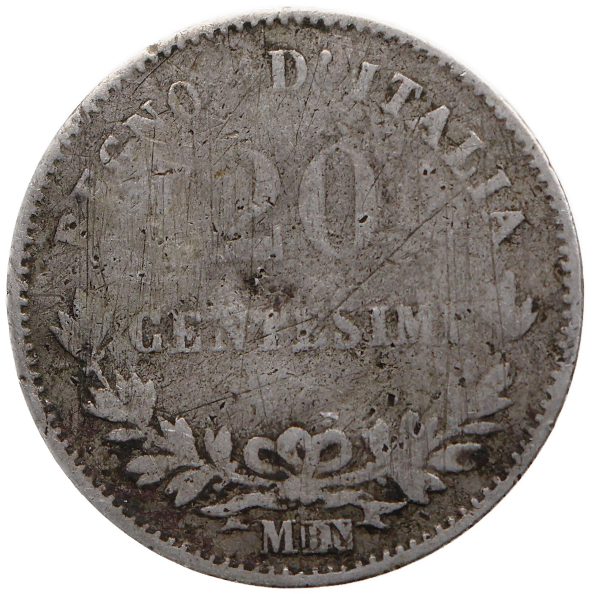 Reverse legend: REGNO D'ITALIA 20 CENTESIMI M BN