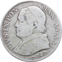 1866 Italy States Papal One Lira Pius IX Silver Coin