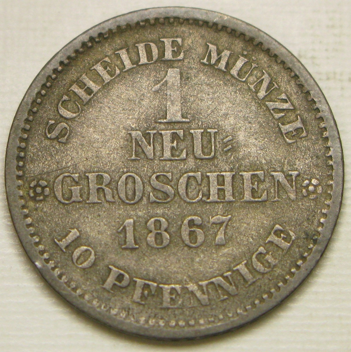 1867 1 Groschen Saxony Johann Coin Billon VF 2162