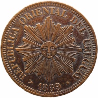 Obverse legend: REPUBLICA ORIENTAL DEL URUGUAY 1869