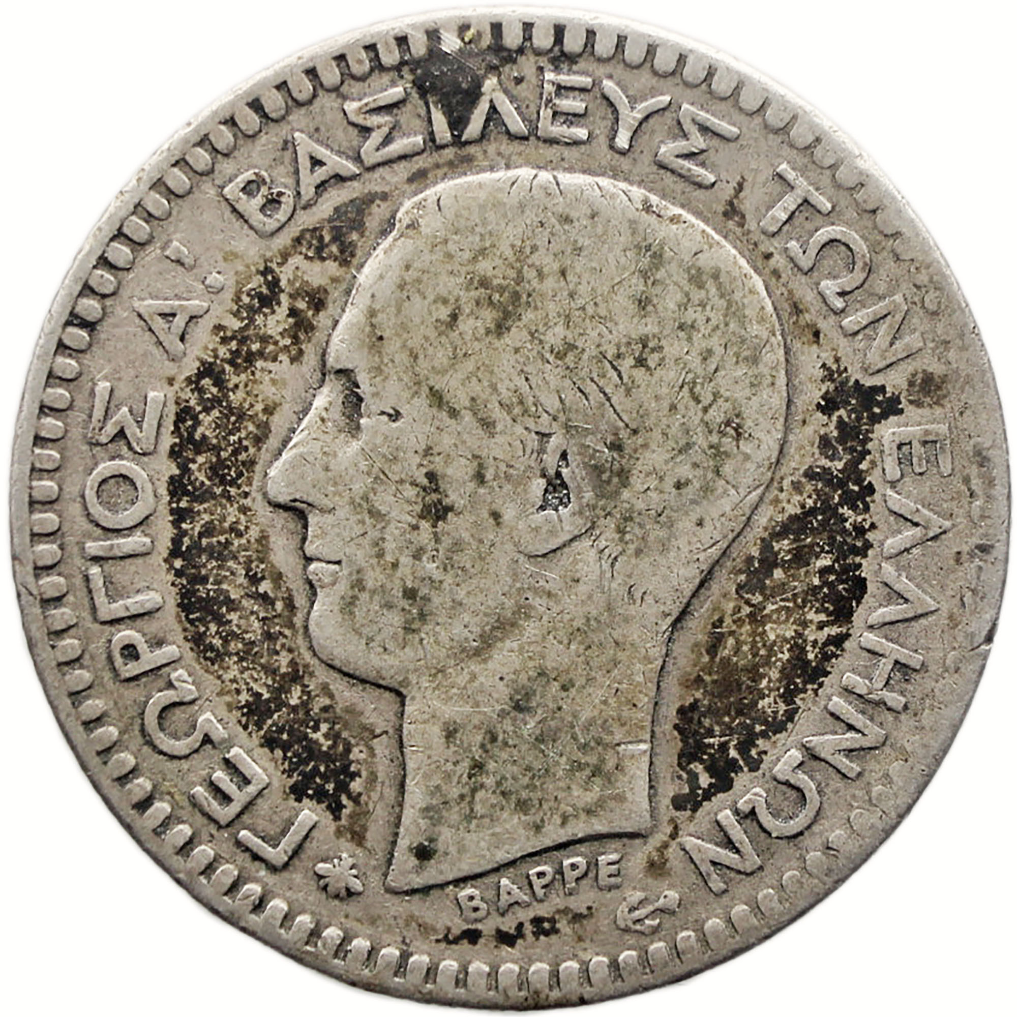 Obverse legend: ΓΕΩΡΓΙΟΣ Α! ΒΑΣΙΛΕΥΣ ΤΩΝ ΕΛΛΗΝΩΝ ΒΑΡΡΕ