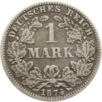 Reverse legend: DEUTSCHES REICH 1 MARK 1874