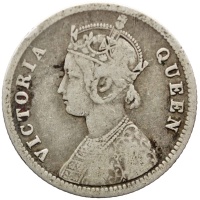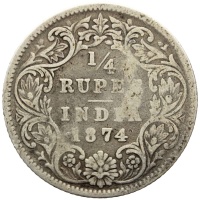 Reverse legend: “1/4 RUPEE INDIA 1874”