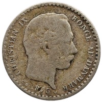 Obverse legend: CHRISTIAN IX KONGE AF DANMARK VBP 1875 ♥