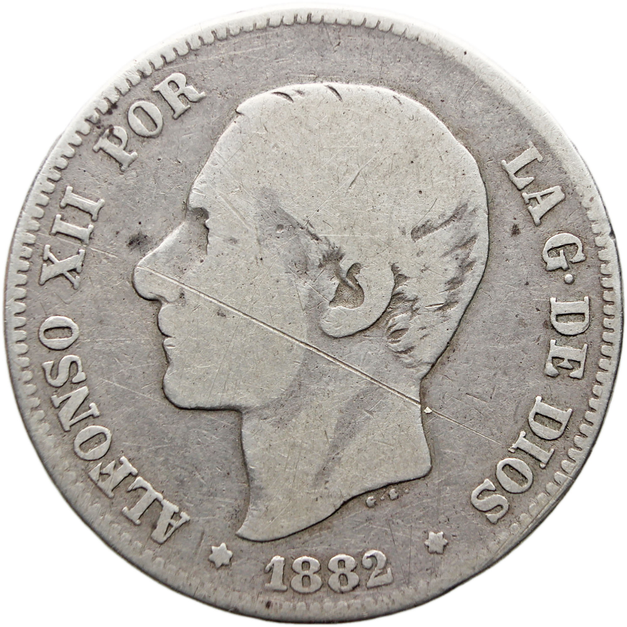 Obverse legend: ALFONSO XII POR LA G DE DIOS * 1882 *