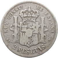 Reverse legend: REY CONSTL. DE ESPAÑA MS 2 PESETAS M