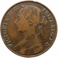 Obverse: The wreathed portrait of the Queen Victoria, facing left.