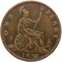 Reverse legend: ONE PENNY 1882