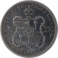 Reverse legend: “UA MAU KE EA O KA AINA I KA PONO. ½ D HAPALUA”
