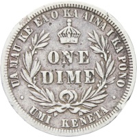 Reverse legend: “UA MAU KE EA O KA AINA I KA PONO* ONE DIME* UMI KENETA”