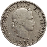 Obverse legend: CONFŒDERATIO HELVETICA LIBERTAS 1884
