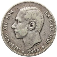 Obverse legend: ALFONSO XII POR LA G DE DIOS