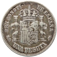Reverse legend: REY CONSTL. DE ESPAÑA . M. UNA PESETA .M.S.