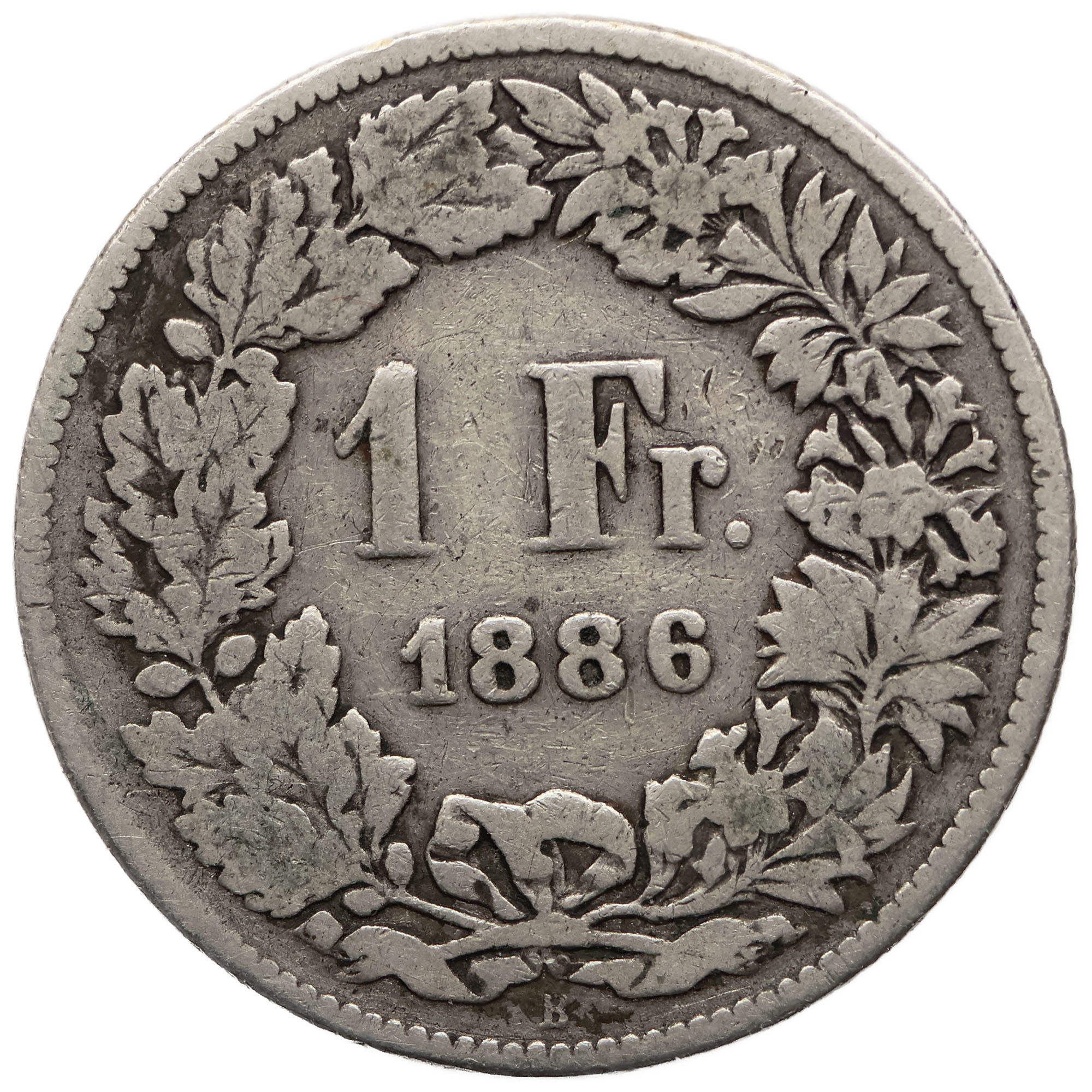 Reverse legend: 1 Fr. 1886 B