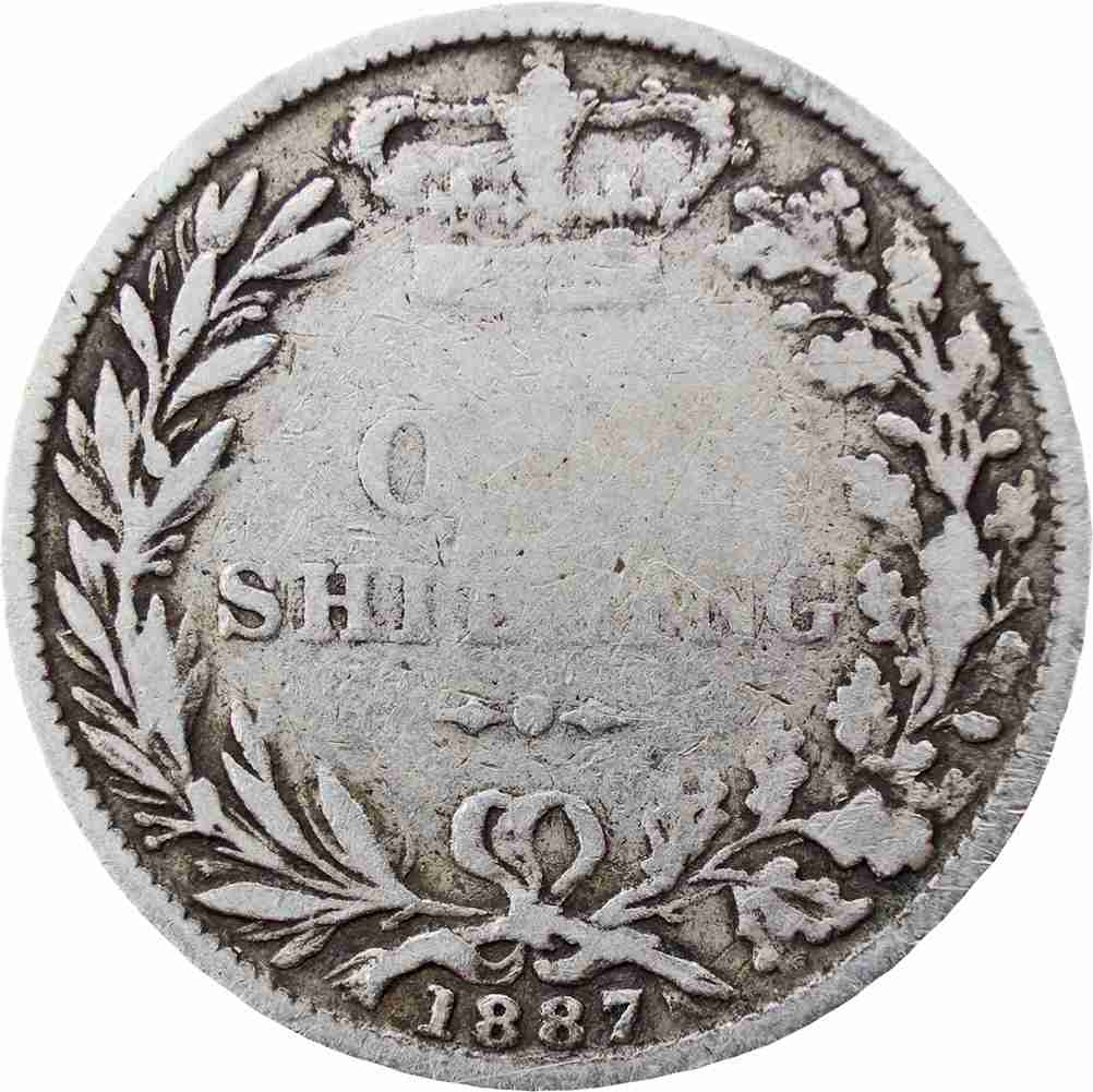 Reverse legend: “ONE SHILLING 1887”