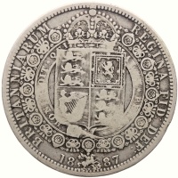 Reverse legend: BRITANNIARUM REGINA FID DEF 1887 HONI SOIT QUI MAL Y PENSE