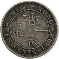 Reverse legend: * HONG – KONG * 香 毫 • 一 港 TEN CENTS 1888