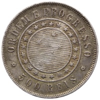 Reverse legend: ORDEM E PROGRESSO * 500 RÉIS *