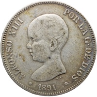 Obverse: The toddler portrait of King Alfonso XIII facing left