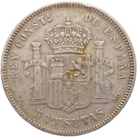 Reverse legend: REY CONST.L DE ESPANA P·G· 5 PESETAS ·M·