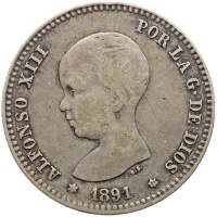 Obverse legend: ALFONSO XIII POR LA G DE DIOS * 1891 *
