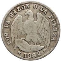 Obverse legend: POR LA RAZON O LA FUERZA * 1892 * (Overdate 9)