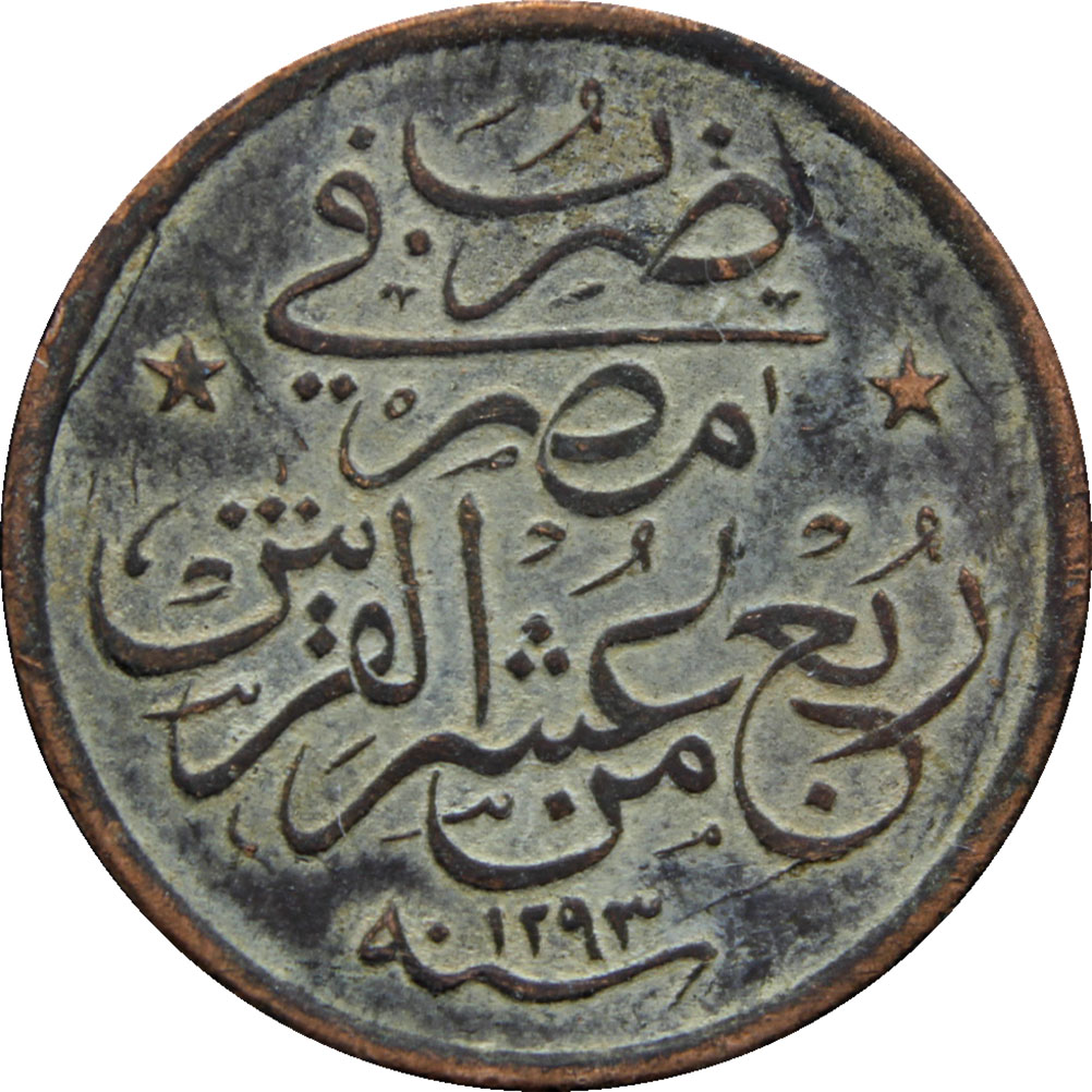 Reverse legend: “ضرب في مصر ربع من عشر القرش ١٢٩٣”
