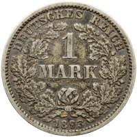 Reverse legend: “DEUTSCHES REICH 1 MARK 1893”
