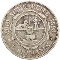 Reverse legend: ZUID AFRIK. REPUB. 1893 2 SHILLINGS