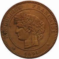 Obverse legend: “REPUBLIQUE FRANÇAISE OUDINÉ 1894”