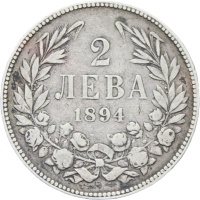 1894 Bulgaria Ferdinand I silver 2 leva coin