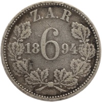 Reverse legend: 6 / Z.A.R. / 1894