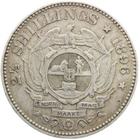 Reverse legend: “2½ SHILLINGS * 1896 * EENDRAGT MAAKT MAGT”