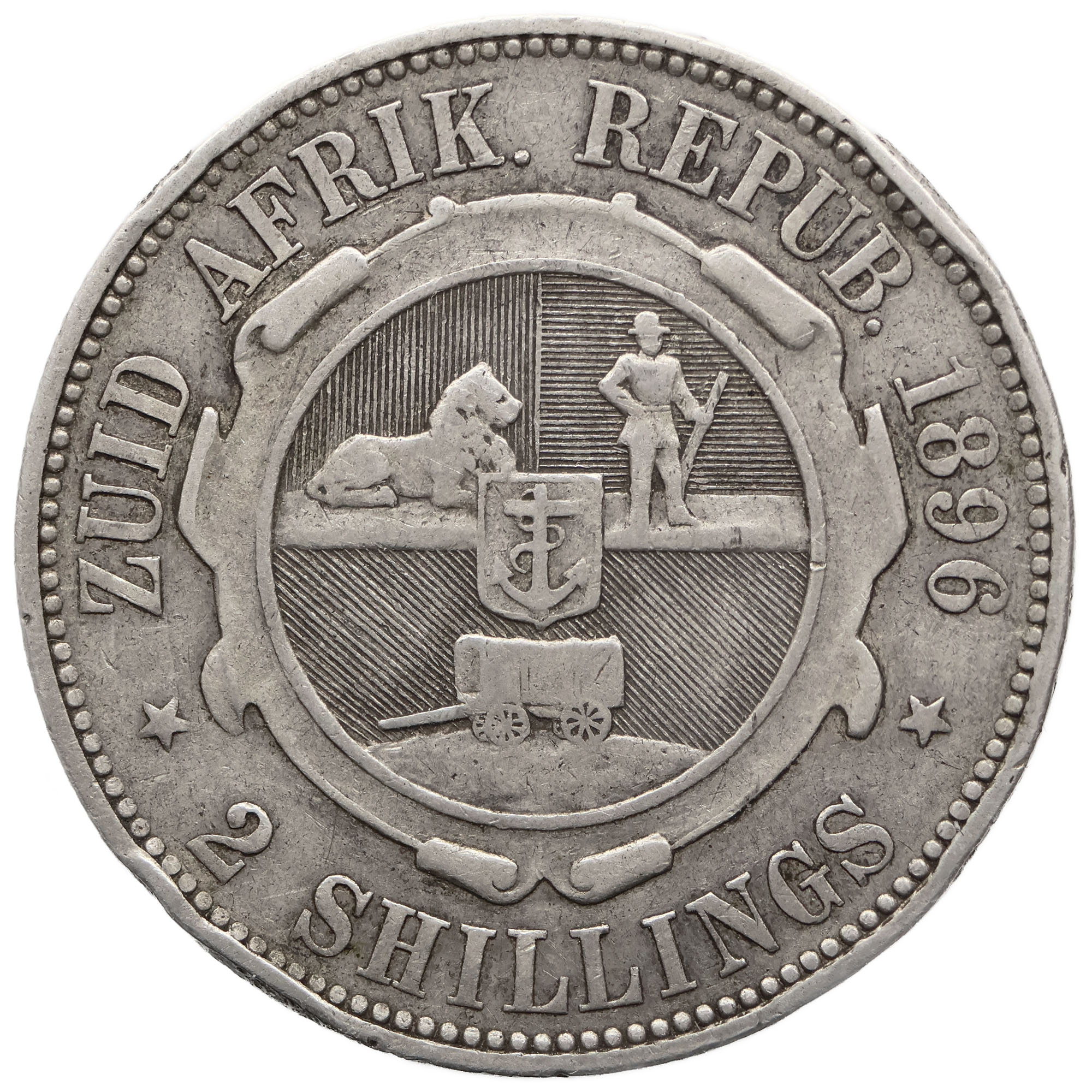 Reverse legend: ZUID AFRIK. REPUB. 1896 2 SHILLINGS