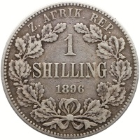 Reverse legend: Z. AFRIK. REP. 1 SHILLING 1896