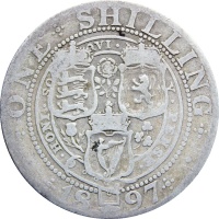 Reverse legend: “ONE SCHILLING • 1897 ••HONI•SO QVI• V• PENSE•”