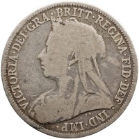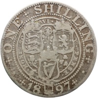 Reverse legend: “ONE SCHILLING • 1897 ••HONI•SO QVI• V• PENSE•”