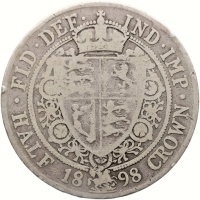 Reverse legend: •FID•DEF•IND•IMP• 1898• HALF CROWN•