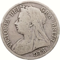 Obverse: Bust of the Queen Victoria facing left . Old Veiled and draped head