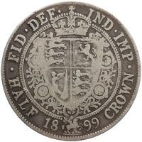 Reverse legend: “•FID•DEF•IND•IMP• 1899• HALF CROWN•”