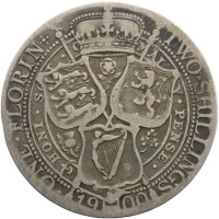 Reverse legend: “ONE•FLORIN+ TWO•SHILLINGS • 19 00 •HONI • SO T • Q MAL Y • PENSE •”