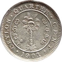 Reverse legend: CEYLON QUARTER CENT 1/4 සතය சதம் 1901