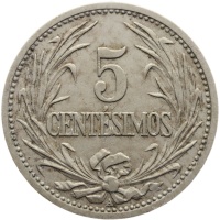 Reverse legend: “5 CENTÉSIMOS A”