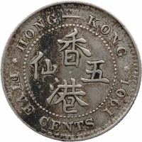 Reverse legend: HONG-KONG FIVE CENTS 1901 香 仙 • 五 港